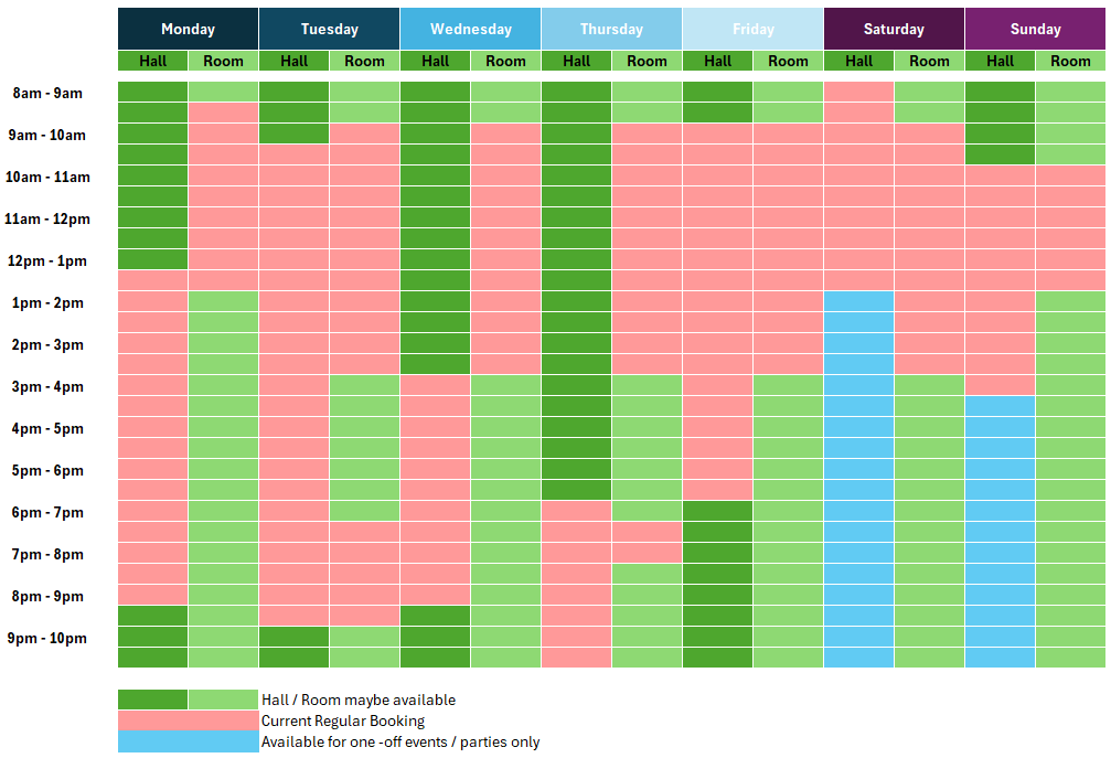 Common Ground has a lovely large hall that can fit 80 to 100 people. With a kitchen to one side and a large stage its suitable for a wide range of activities – Markets/Fairs, Birthday Parties, Music & Arts, Performance Stage, Faith Groups, Health & Fitness & more! The hall can be booked for one off events or regular weekly groups. Price is £20/hr (£50 deposit) if less than 40 people or £30/hr (£100 deposit) if more than 40 people. To book or to get more info just get in touch.